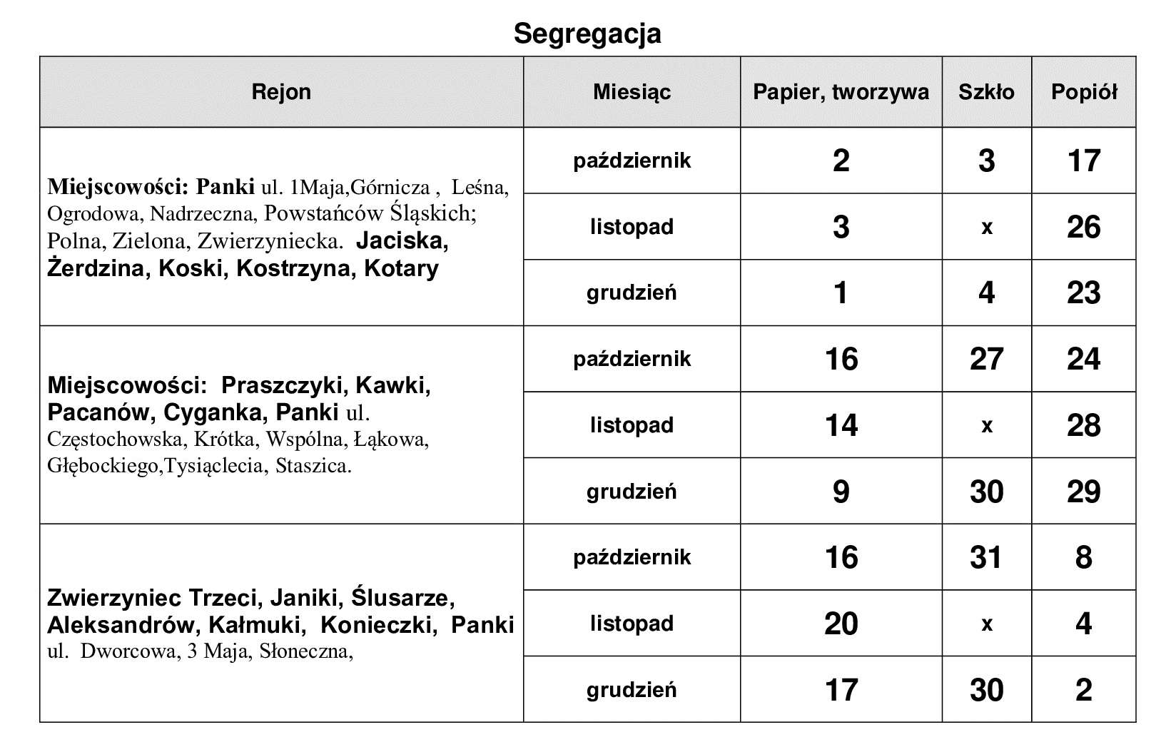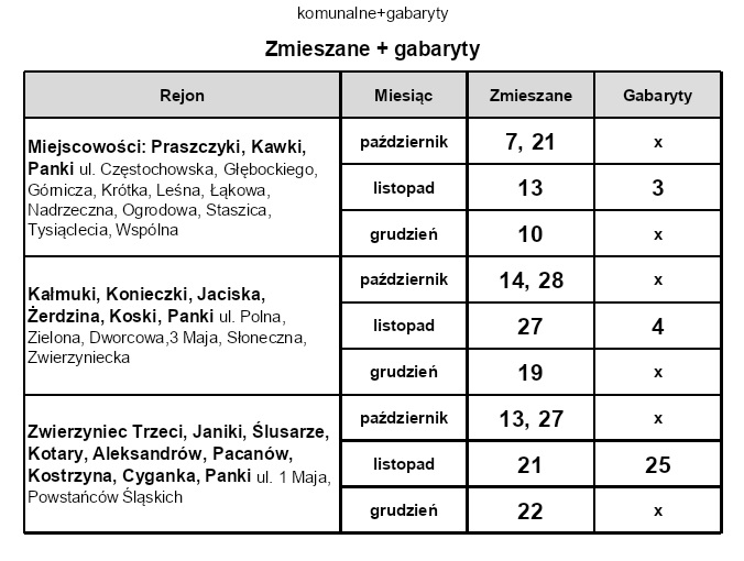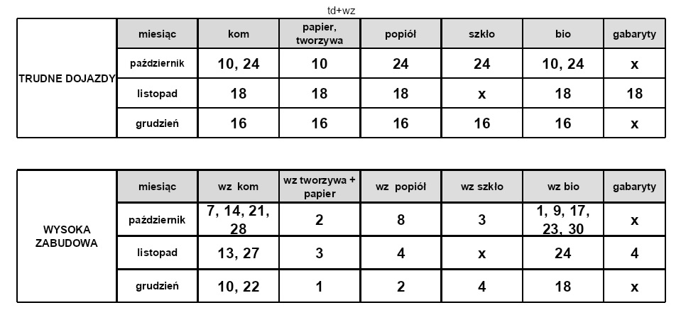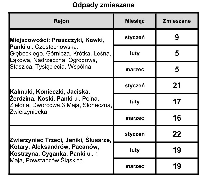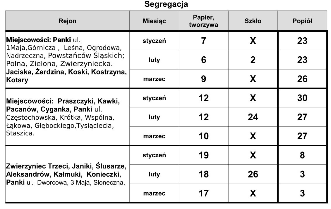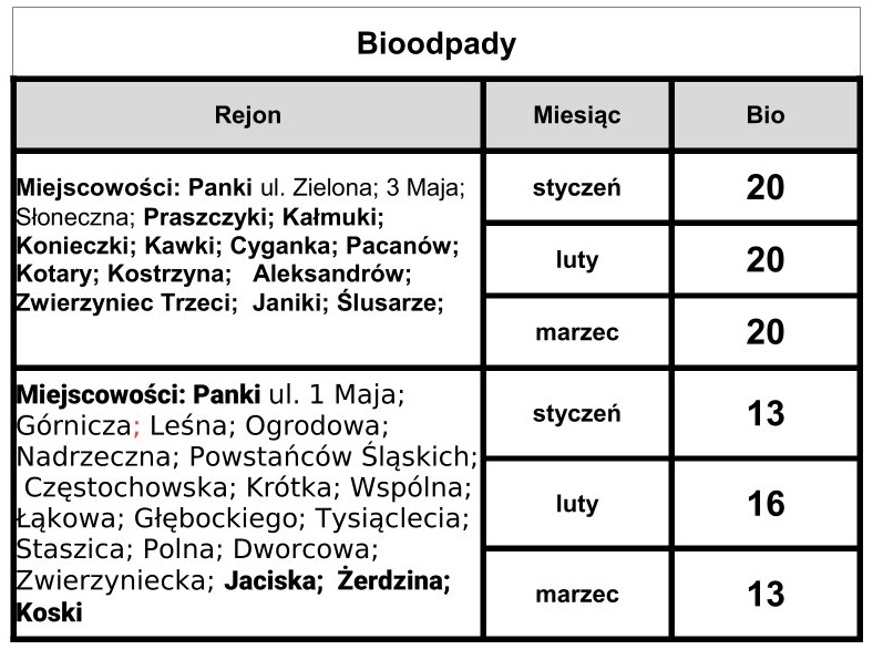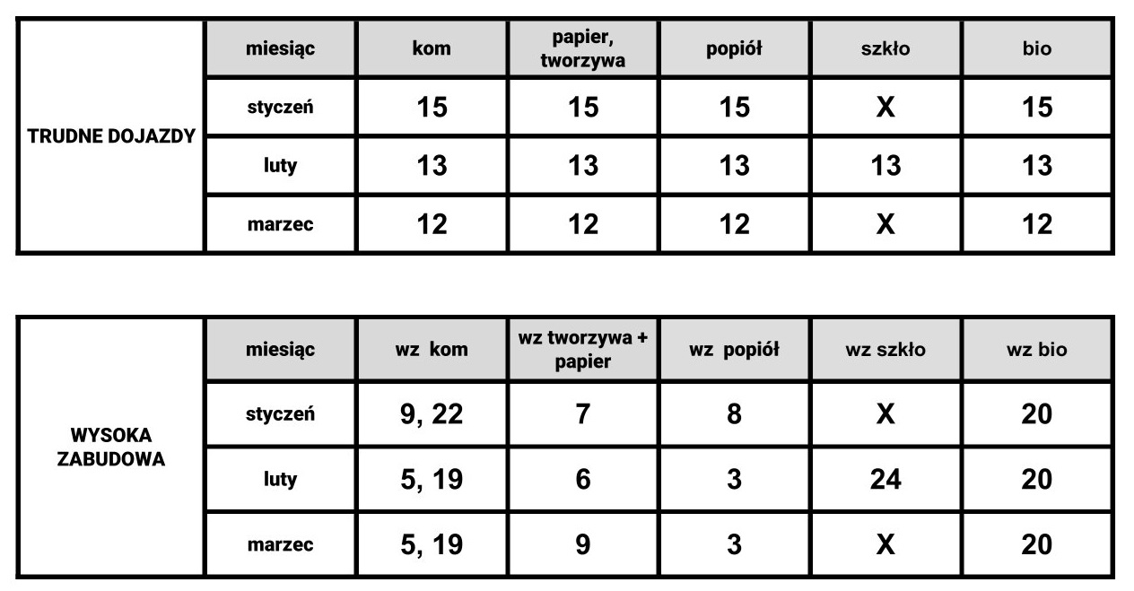 Harmonogram wywozu odpadów I kw 2026